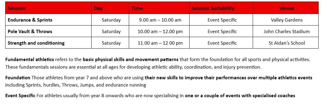 Please note: Attendance at training sessions is by invitation only. Athletes will be allocated to training sessions based on age, experience, session availability, and the athelete’s preference.